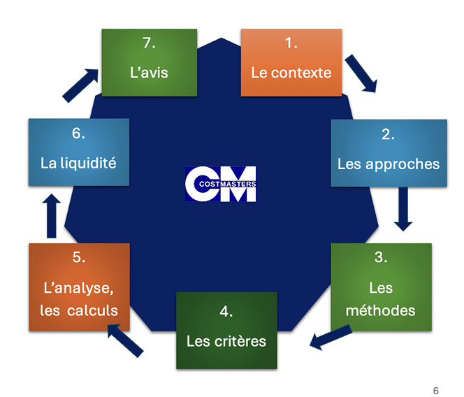 Nous prenons en compte plusieurs approches d’évaluations que nous éclairons au moyen de méthodes reconnues en Belgique, parfois développées par des experts et professeurs internationaux. Puisqu’une PME n’est pas une grande entreprise, nous en tenons également compte dans nos travaux. Ceux-ci se traduisent dans un avis technique que vous pouvez utiliser dans diverses circonstances en fonction de son objectif.